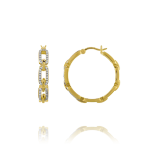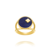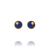 Ces boucles d’oreilles circulaires de la collection Légende sont ornées d’un trèfle doré niché dans un écrin bleu marine, le tout encadré d’argent doré.