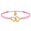 Alliant élégance et décontraction, ce bracelet en argent de la collection Passion est doté d’une cordelette bleu turquoise, surmontée d’un cœur et d’un trèfle dorés entrelacés.