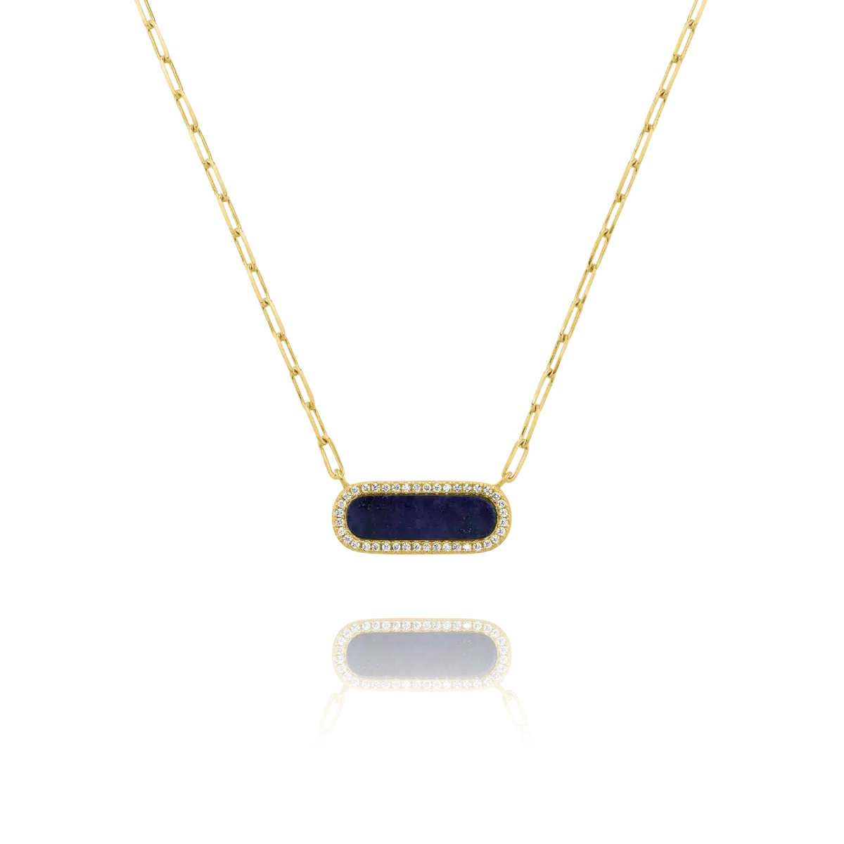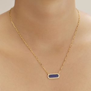 L’alliance de la pierre lapis-lazuli, des oxydes de zirconium et de l’argent 925 doré confère une réelle élégance à ce fin collier de maillons allongés.