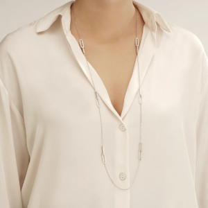 Cet élégant sautoir de 60 cm en argent 925 composé d’une longue chaine froçat est orné de 6 double maillons entrelacés sertis d’oxydes de zirconium. Intemporel et élégant, ce bijou vous apportera modernité et féminité.